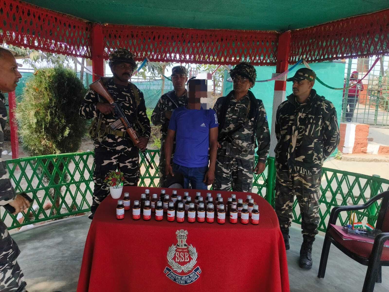 कमांडेंट गौरव सिंह ने बताया कि सीमा चौकी नरपतपट्टी के क्षेत्र में दवा तस्करी की सूचना मिली थी। सूचना पर विशेष चेकिंग अभियान चलाया गया। जांच के दौरान एक व्यक्ति को संदिग्ध अवस्था में रोका। उसने अपना नाम समशाद, निवासी जिला अररिया (बिहार) बताया। तलाशी के दौरान उसके थैले से प्रतिबंधित कफ सिरप की 34 बोतलें बरामद हुई।